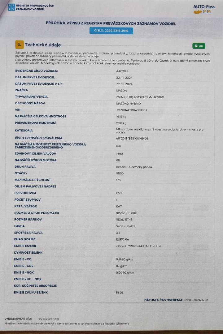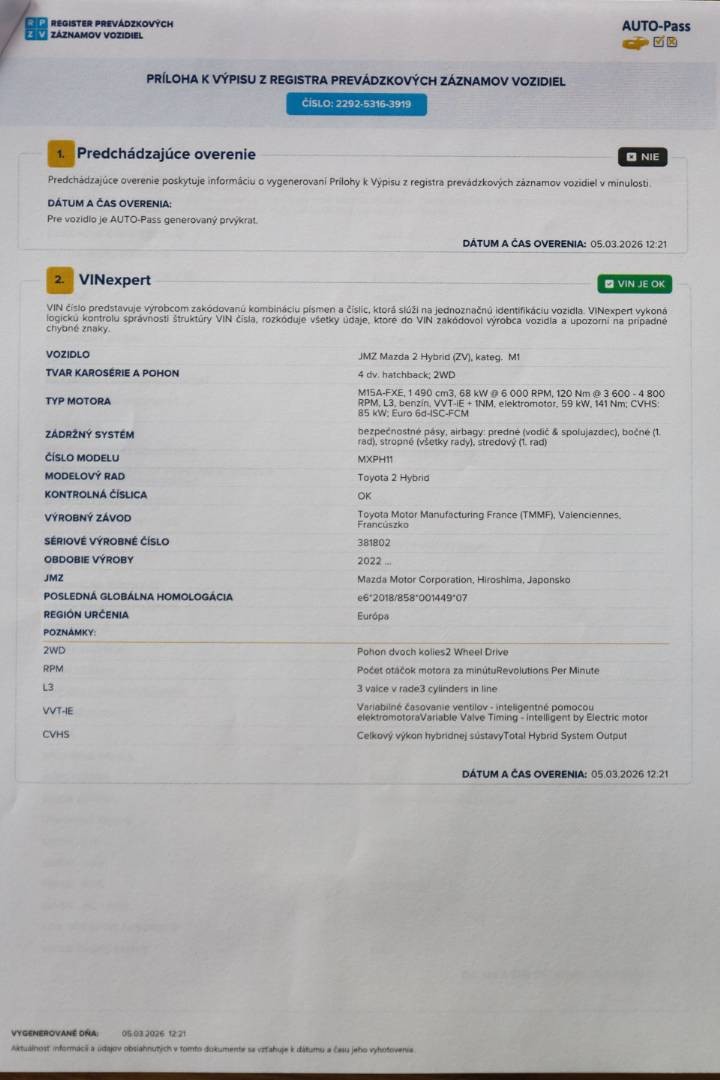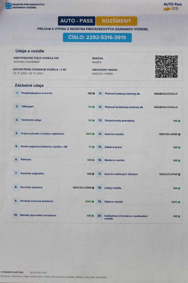 Možnosť samostatného preverenia histórie vozidla cez VIN číslo: JMZKBAC310A381802