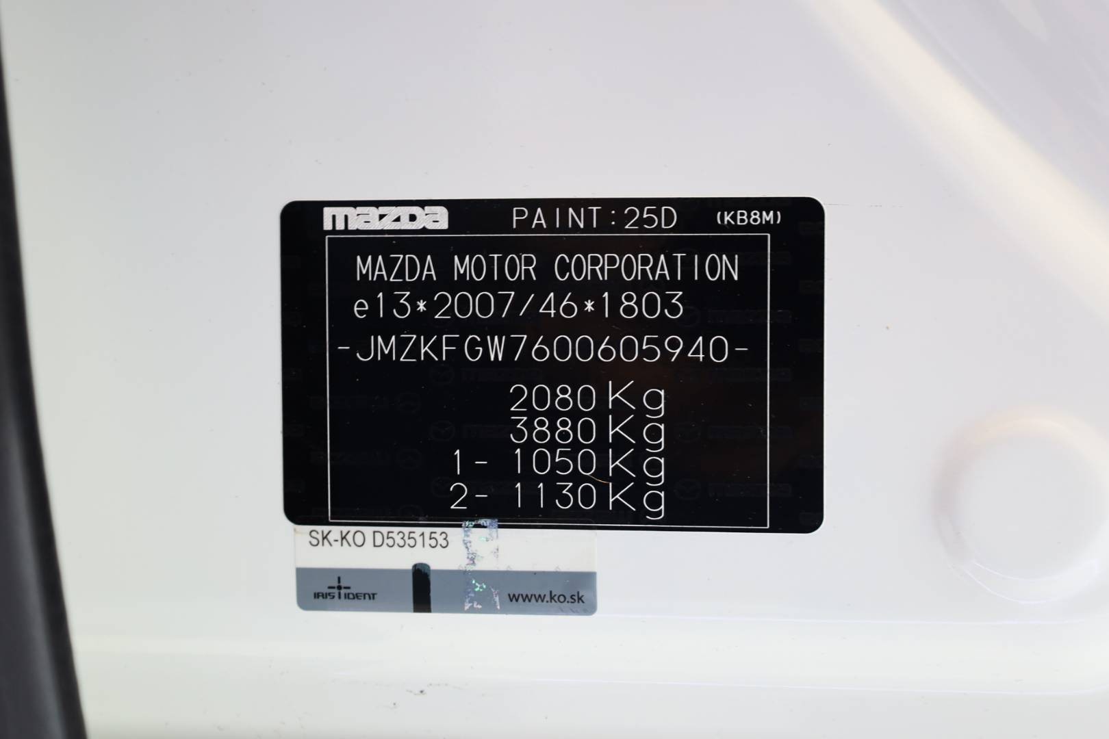 | VIN: | JMZKFGW7600605940 |