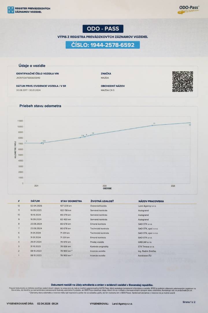 Zmluvná doživotná garancia najazdených kilometrov | K vozidlu je doložený ODO-Pass a Auto-Pass