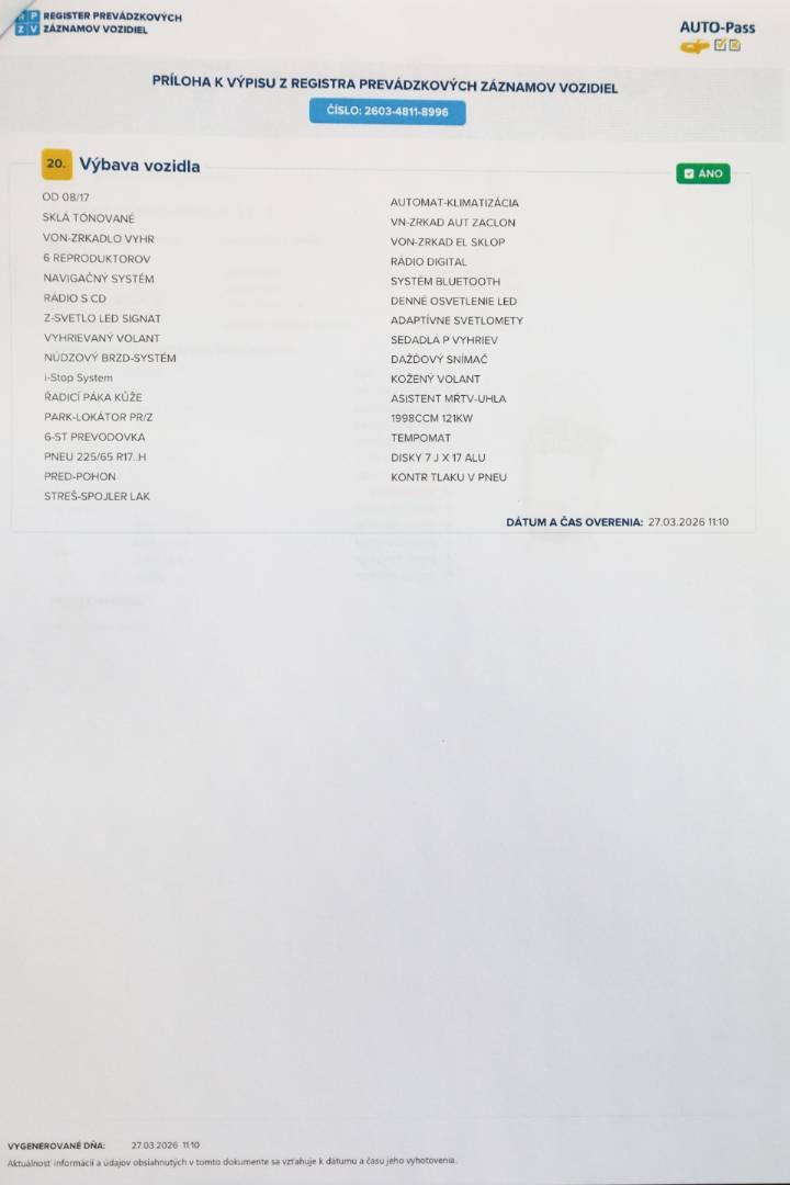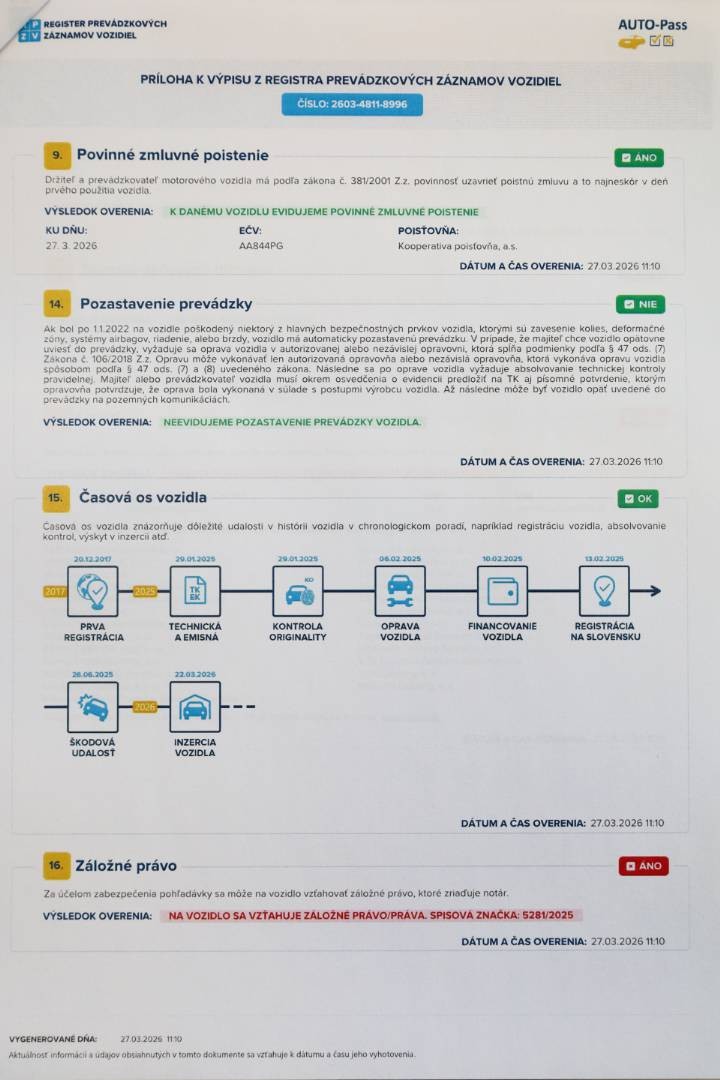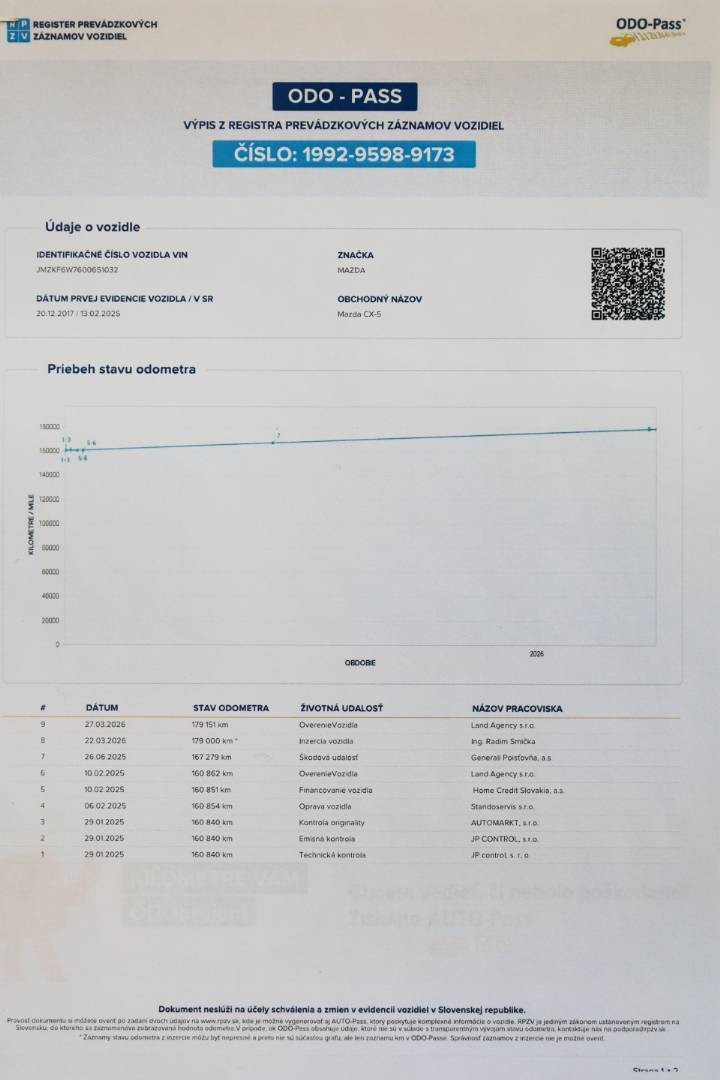 Zmluvná doživotná garancia najazdených kilometrov | K vozidlu je doložený ODO-Pass a Auto-Pass