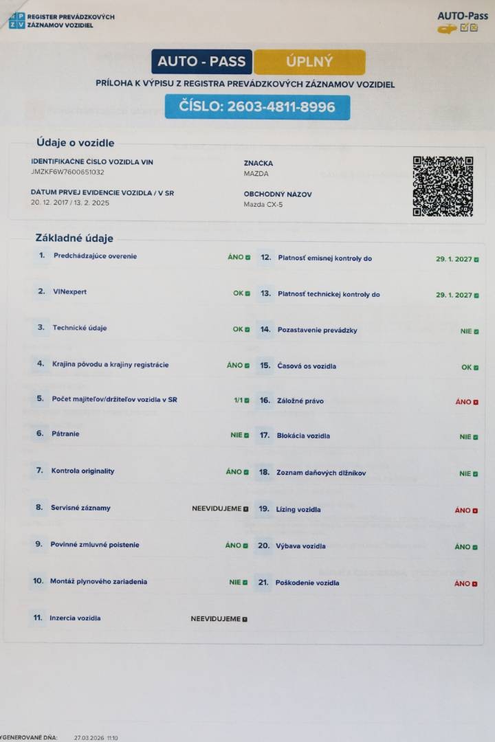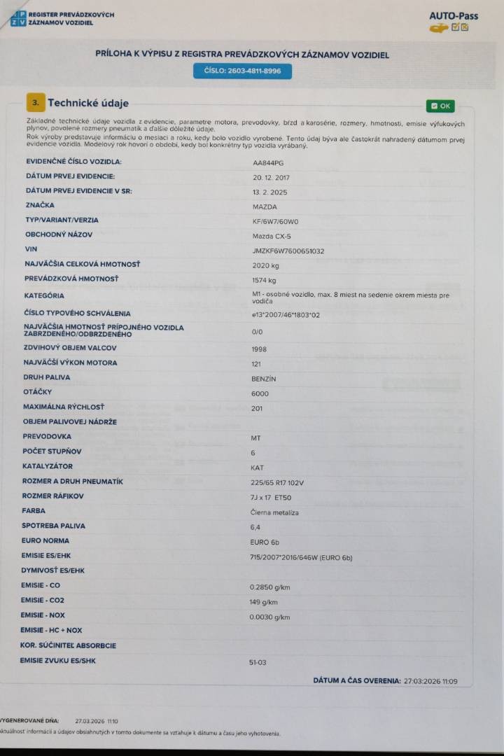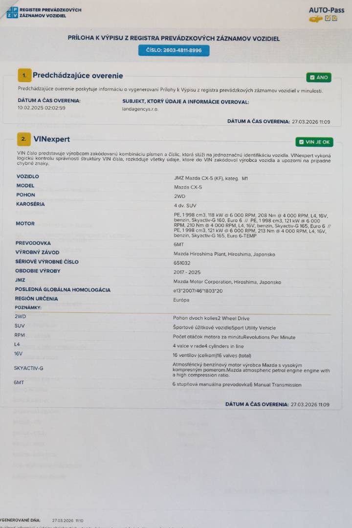 Možnosť samostatného preverenia histórie vozidla cez VIN číslo: JMZKF6W7600651032